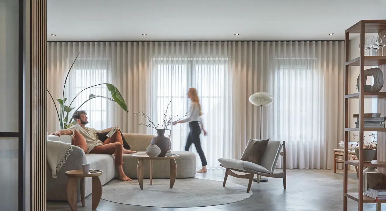 Goede gordijnen zijn niet statisch - ze bewegen mee met de dag. Ochtendlicht dat zacht door een inbetween valt, avondzon die kleuren verdiept, texturen die in kunstlicht tot leven komen. Met By Tzum wordt elk moment van de dag anders en bijzonder. Het zijn gordijnen die sfeer scheppen zonder nadrukkelijk aanwezig te zijn, en toch steeds opnieuw verrassen.